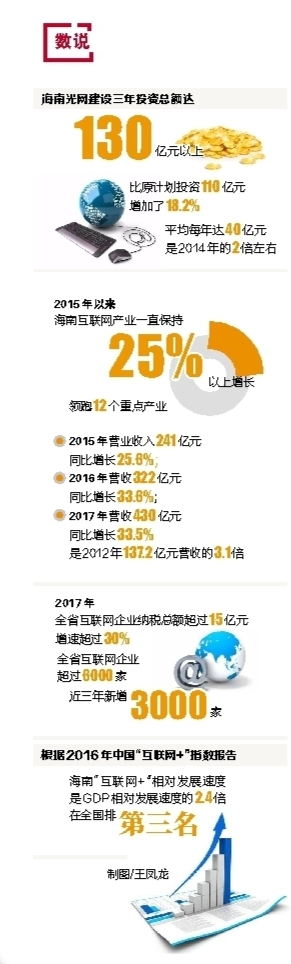 据统计,2015年以来,海南省互联网产业一直保持25%以上增长,领跑十二个重点产业。