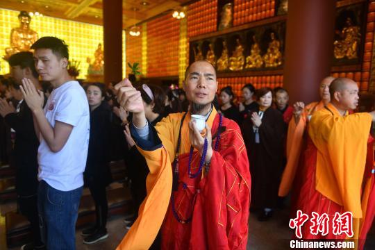 图为举行消灾法会为两岸民众祈福。吕明摄