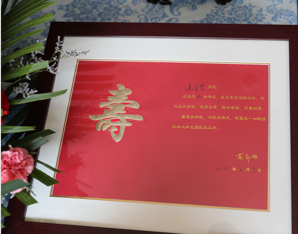 李晓东代表省委会向高老致以诚挚的问候和祝福,向老人分别送上民革中央主席万鄂湘和省委会的寿辰贺卡,以及精心准备的寿桃蛋糕、花篮、果篮等礼物,衷心祝愿高老生日快乐、健康长寿。