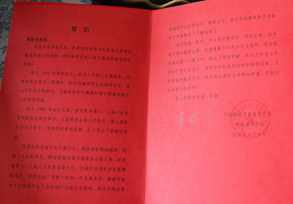 4月9日,民革陕西省委会第七届主委高凌云迎来了百岁寿辰,民革中央主席万鄂湘发来贺信为老人祝寿,民革陕西省委会主委李晓东、省委会专职副主委李育森等一行专程为老人庆祝百岁生日。