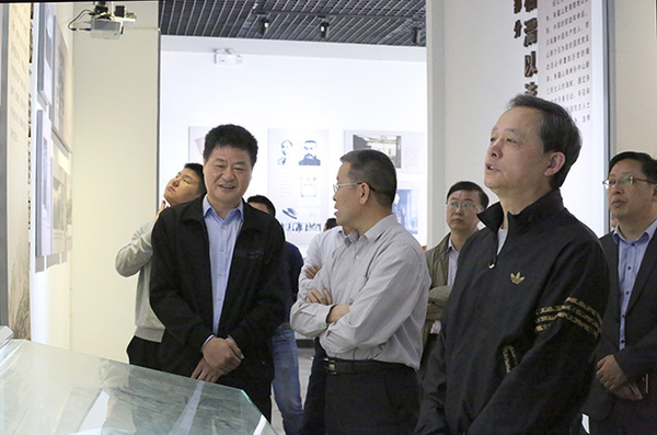王安义(左)、王家琪(中)、张子强(右)等参观朱蕴山纪念馆。