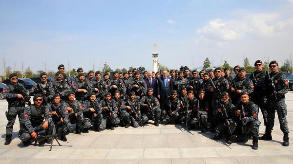 图为埃尔多安与当地警官合影。(路透社)