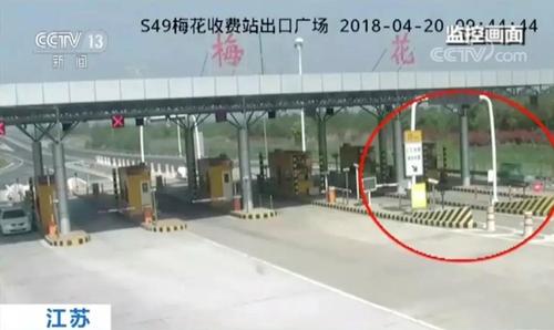在监控画面中可以看到,当时该名司机驾驶电动车从新扬高速泗洪梅花收费站驶入了高速。之后被收费站工作人员发现,并报警。