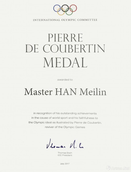 韩美林荣获“顾拜旦奖”证书
