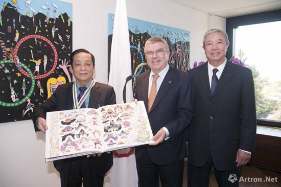 韩美林与国际奥委会主席巴赫、国际奥委会副主席于再清
