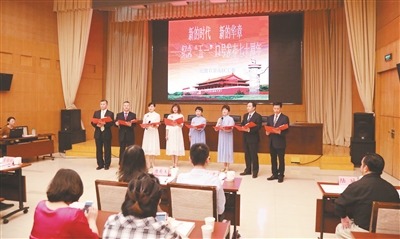 4月20日,民盟北京市委会在京举办纪念中共中央发布“五一口号”70周年朗诵会。朗诵会上,来自各区级民盟组织的近50名盟员,以《不忘初心 携手新征程》《党旗下的春天》等为题进行朗诵,现场气氛热烈。(如上图①)