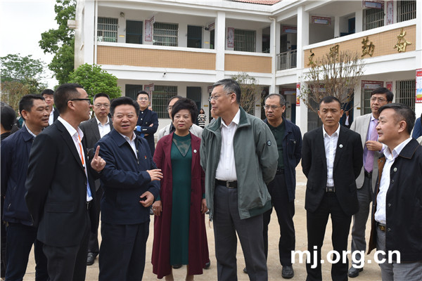 4月23日,全国政协副主席、民进中央常务副主席刘新成带队赴湖南省衡阳市调研。图为调研组在陡岭小学调研。