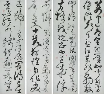 第三,周文彰坚持“草有据,笔有源” 。周文彰认为,草书若无据,不讲规范,随便造次,既失去了这门艺术的历史传承,也失去了它的文化价值。因此,他在草书创作中坚持从不生造一个符号,不会写的笔划就勤查草书字典。在日常书法创作中,他亦注重选择常见的字形,方便普通读者容易认出。