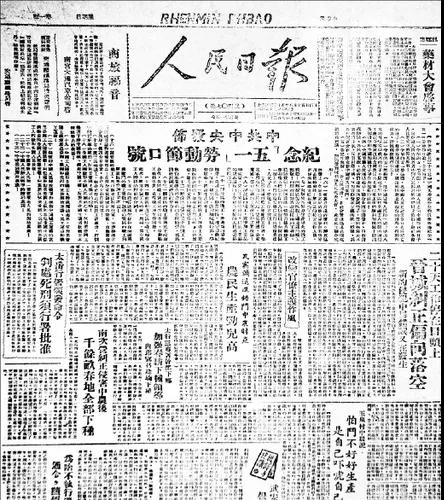 △《人民日报》刊载的中共中央发布的纪念“五一”劳动节口号
