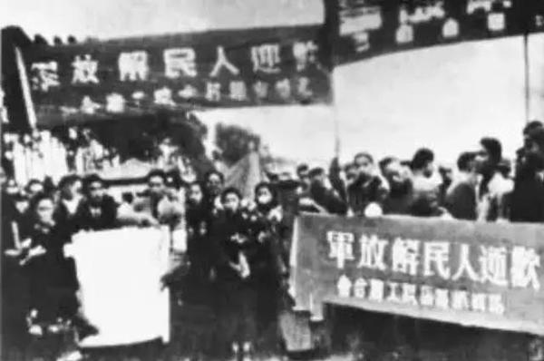 △昆明各行业欢迎解放军图片来源:中国共产党云南省委员会党史研究室