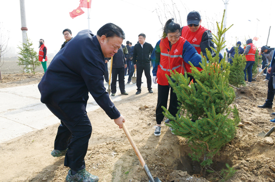 当日,恰逢东明镇开展植树活动。委员们加入到绿化植树队伍中,经过辛勤劳动,为道路两旁披上了“绿装”。在随后的座谈会上,调研组听取了前太平村脱贫攻坚工作情况介绍,围绕进一步推进脱贫攻坚工作深入交流探讨,针对如何推动扶贫产业发展提出了有针对性和可操作性的意见和建议。
