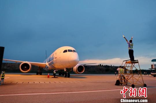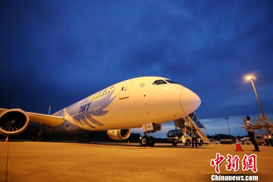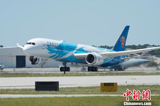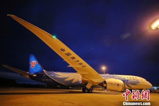 中新网广州5月3日电 (记者 郭军)5月2日下午18点50分,南航首架波音787-9飞机降落在广州白云国际机场,南航机队迎来新成员。