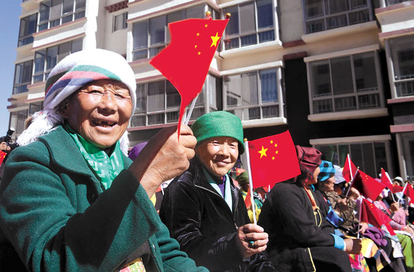 曲水县跨区(柳梧)搬迁安置乔迁仪式现场。记者洛桑摄