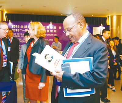 联合国副秘书长盖图在论坛间隙阅读《习近平谈治国理政》