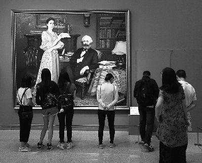 一幅栩栩如生的马克思与妻子燕妮的肖像油画吸引大批观众驻足。陈 曦 摄