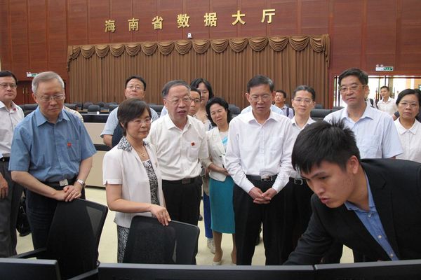 郝明金一行还实地考察了海南省政务数据中心,通过巨幅屏幕观看数据中心建设运行情况以及在“多规合一”、旅游市场监管等领域的应用展示,并现场观看了政务数据在旅游、防灾减灾等方面的应用演示。