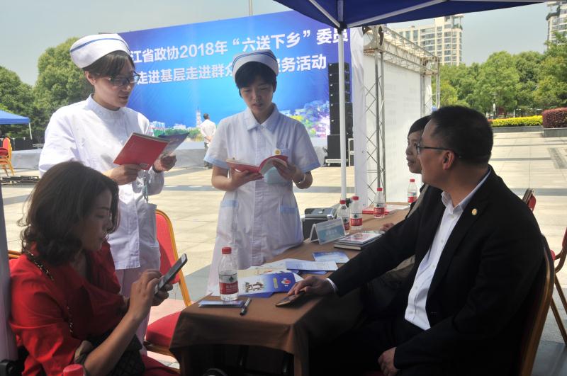 人民政协网浙江5月11日电(记者 鲍蔓华) 5月11日的早晨六点过后,浙江省一些省政协委员、专家学者及省直部门负责人在机关门口集合,搭乘开往中西部龙游的高铁,开展省政协多年坚持的为民服务的特色品牌—“六送下乡”“两走进”。