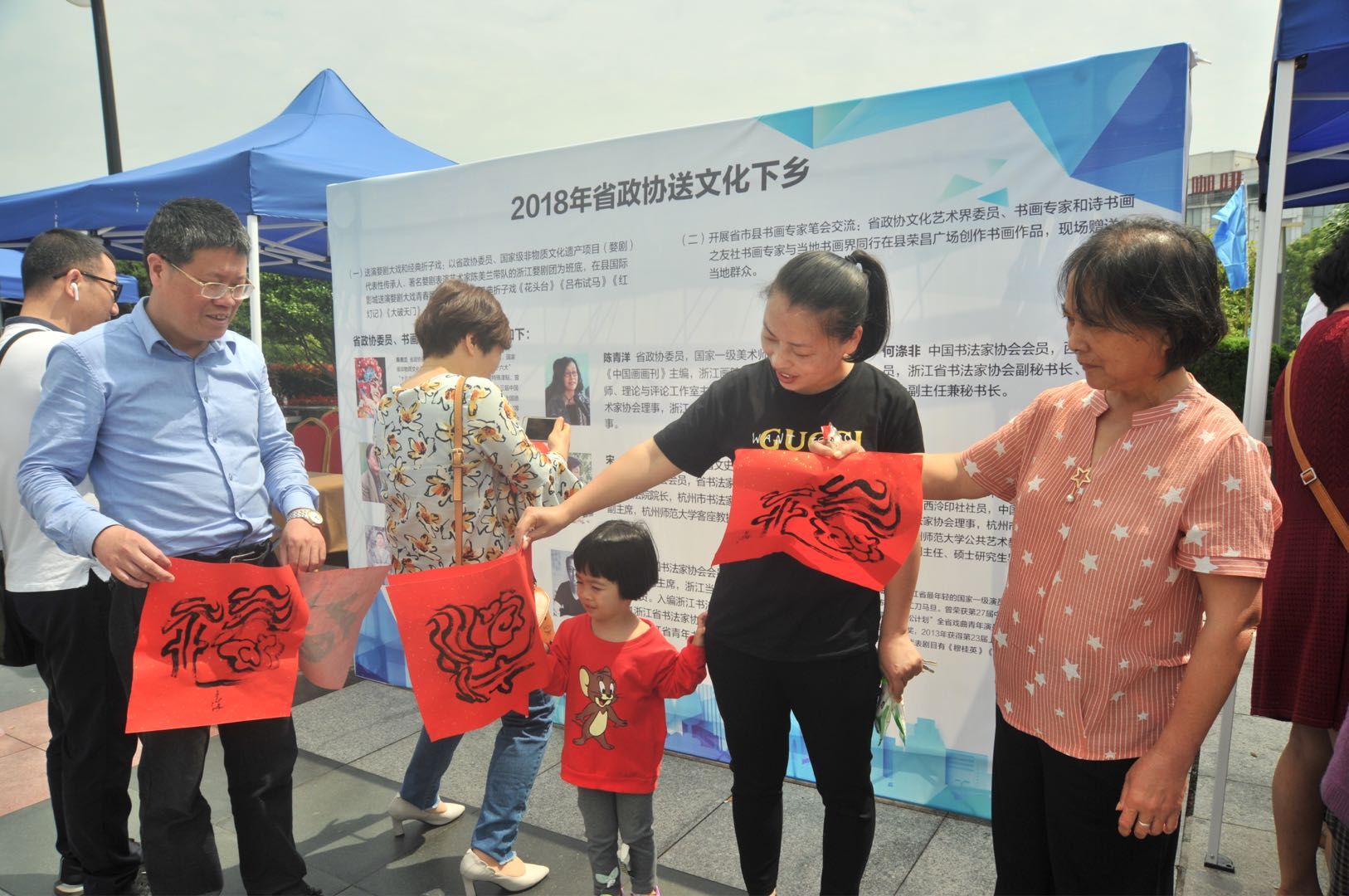 龙游县的荣昌广场上人头攒动,义诊的服务大篷下挤着前来问诊、现场咨询百姓,科普大篷内有赠送物资和科普书籍,法律大篷中法务人员耐心开展着咨询和解答……,广场上一场场精彩的表演拉开了“六送下乡”“两走进”活动月的序幕。田间地头、鱼塘、茶园、课堂,技术培训、实地指导……政协委员与农技专家为农民送去致富的技术和希望。