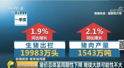 根据国家统计局数据,一季度生猪出栏19983万头,同比增长1.9%,猪肉产量1543万吨,同比增长2.1%。