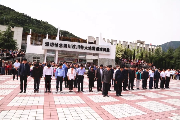 调研组为汶川特大地震罹难同胞和在抗震救灾中捐躯的英雄默哀