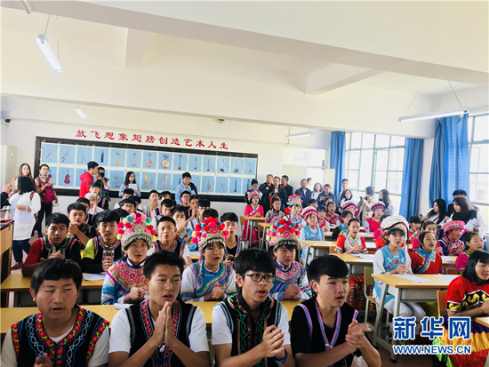 “尊贵的客人欢迎到彝寨,远方的朋友一路辛苦了,太阳照、喜鹊叫,欢迎你来到……”走进漾濞彝族自治县第一中学初中部的音乐教室,一首彝族迎宾谣在耳畔回荡,这首歌曲是由漾濞一中初中部老师孙陈军自编词曲而成,并通过汉语和彝语两种语言教唱,向学生传达各族人民共情长存的友谊。