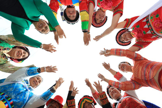 “我媳妇是白族,我是藏族,但我们结成一家人以后,一点影响都没有?!敝<易迕裥∽槌ぱ钚愕芩担蚱蘖┱饷炊嗄暌岳匆恢痹诿褡逑八追矫婊ゲ桓缮?、相互尊重、和睦相处。