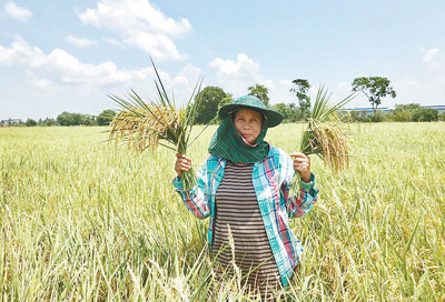在首都曼谷周边的北柳府一处稻田里,沉甸甸的稻穗压弯了稻秆,微风一吹便轻轻晃动,粮农用手摘取饱满的稻穗,摘满一把便打结放在一边。香米原产地的农民依然遵循传统耕作方式,虽然产量有限,但香米品质却得到了传承。