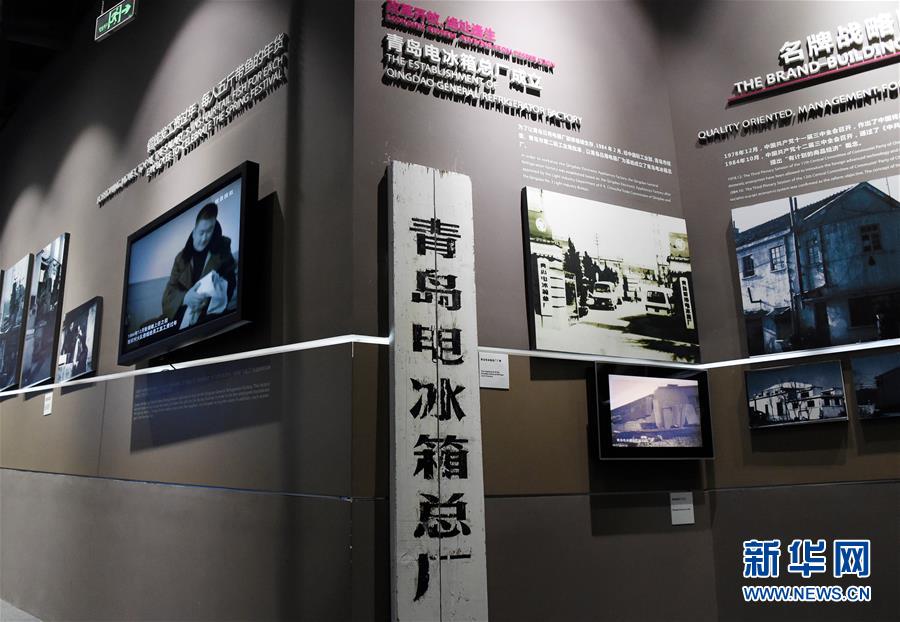 这是海尔文化馆里陈列的“青岛电冰箱总厂”的厂牌(5月11日摄)。 红瓦绿树,碧海蓝天,象征开放与合作的青岛栈桥,手臂般伸向辽阔的海洋。随着上海合作组织成员国元首理事会第十八次会议的即将到来,青岛将在世界目光聚焦下,展示其40年的“开放芳华”。青岛是中国首批14个沿??懦鞘兄?从依托开放政策打造“中国制造”的“青岛样板”,到构建全方位开放格局,再到实施更高层次的“国际化+”行动,这个北方重要的港口城市,成为中国不断扩大开放并取得斐然成就的缩影。一个月前,开放春潮涌动博鳌。初夏6月,“上合之声”将唱响青岛。 新华社记者 李紫恒 摄