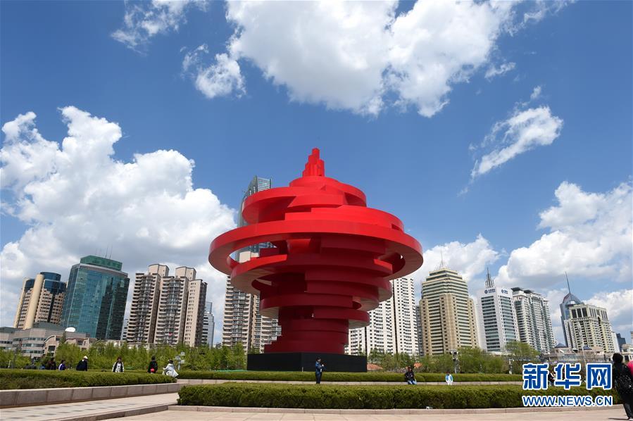 蓝天下的青岛五四广场城市雕塑显得格外艳丽(5月3日摄)。红瓦绿树,碧海蓝天,象征开放与合作的青岛栈桥,手臂般伸向辽阔的海洋。随着上海合作组织成员国元首理事会第十八次会议的即将到来,青岛将在世界目光聚焦下,展示其40年的“开放芳华”。青岛是中国首批14个沿海开放城市之一,从依托开放政策打造“中国制造”的“青岛样板”,到构建全方位开放格局,再到实施更高层次的“国际化+”行动,这个北方重要的港口城市,成为中国不断扩大开放并取得斐然成就的缩影。一个月前,开放春潮涌动博鳌。初夏6月,“上合之声”将唱响青岛。 新华社记者 李紫恒 摄
