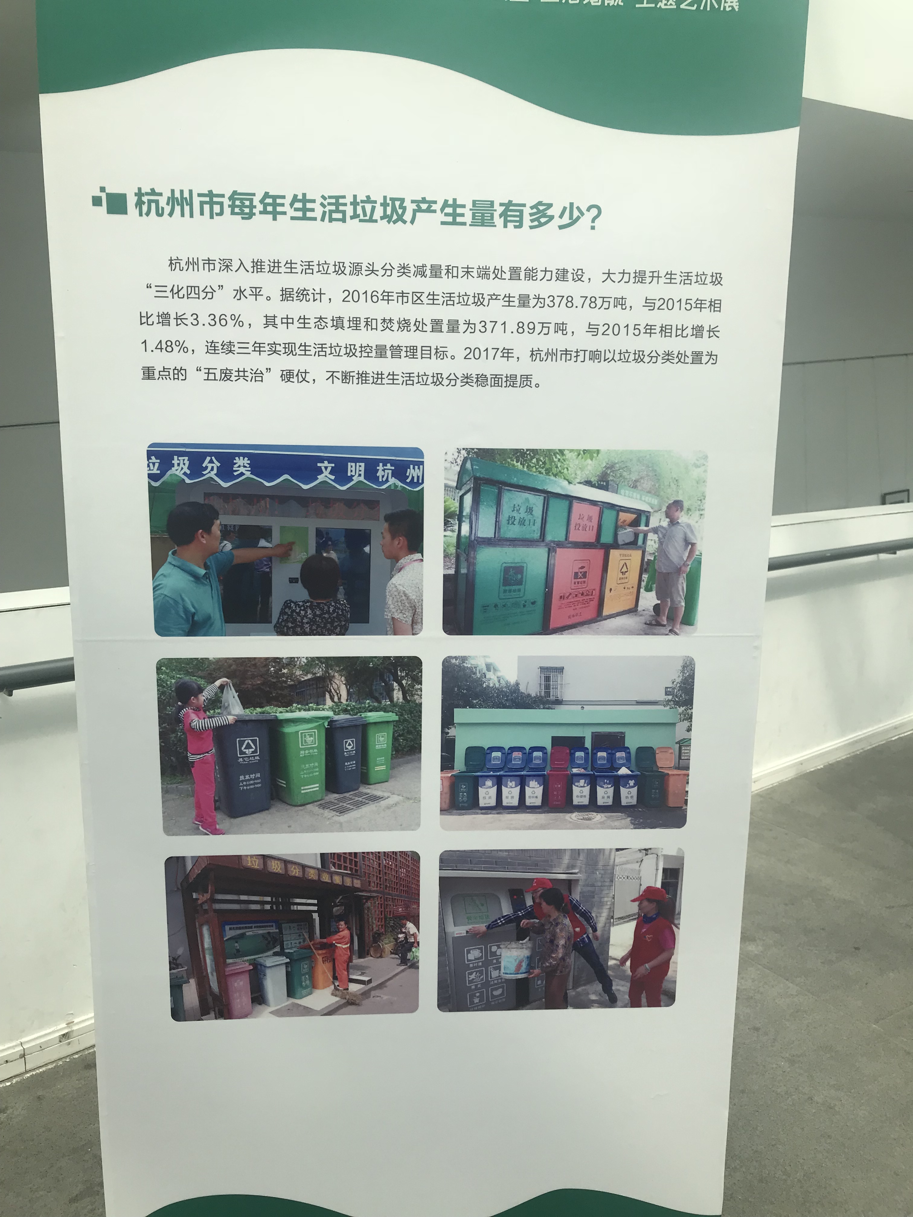 为提升市民对城市生活垃圾处理的知晓度和参与度,普及垃圾减量知识,倡导绿色低碳生活,4月22日世界地球日,博物馆举办了一场“垃圾减量 生活增靓”主题艺术展。参展展品全部面向社会大众征集,共收到300多件利用布料、塑料、金属、陶瓷等废旧材料制作的垃圾艺术品,评选出81件优秀作品展出。参展者来自中国美术学院、浙江大学、浙江工业大学、杭州师范大学等十几所院校的师生,还包括退休老人、小学师生、普通市民等。展览内容新颖,寓教于乐,目前共有20余万人次参观本展览,国内外媒体报道10余次,促进垃圾减量工作进一步深入人心。