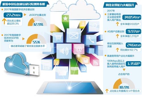 “数字经济已成为近年来带动经济增长的核心动力,2017年我国数字经济对GDP的贡献率为55%,接近甚至超越了某些发达国家水平?!敝泄畔⑼ㄐ叛芯吭赫哂刖醚芯克ぢ炒捍员硎?,根据中国信息通信研究院测算,2017年我国数字经济总量达到27.2万亿元,同比名义增长20.3%,占GDP比重达到32.9%。随着信息化发展环境的全面推进,我国数字经济发展“水涨船高”。