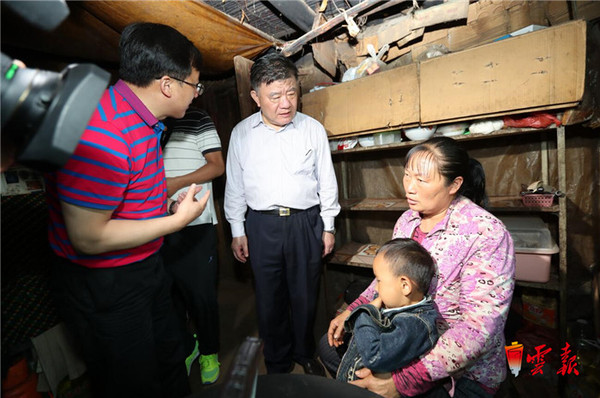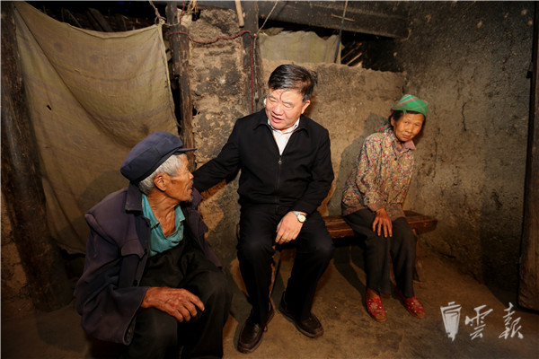 陈竺在昆明市东川区鲁嘎箐村调研脱贫工作入户走访 周灿摄