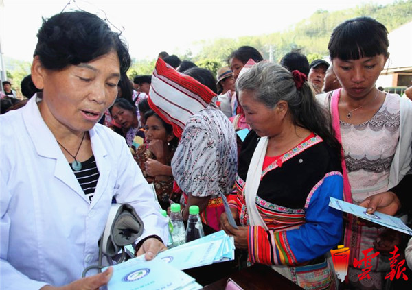 会商解决办法携手扶贫帮困农工党西双版纳支委组织专家为基诺族群众做义诊 戴振华摄