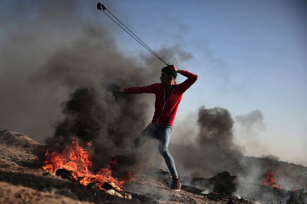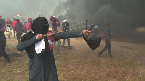 加沙地带的巴勒斯坦人使用投石索(今日巴勒斯坦网站4月4日报道配图)