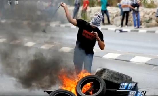 记者:“越过检查站往南大约10公里就是耶路撒冷,由于今天大规模的示威活动,以色列方面已经提前布置了大量军警并封锁了路口,阻止游行队伍进一步的前进。不过这个示威活动仍在持续,现场的空气中也弥漫着非常强烈的催泪瓦斯的味道?!?/p>
