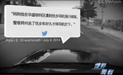 Twitter:刚刚我在华盛顿特区遭到优步司机强行绑架,警察跨州追了优步车好久才将司机拦下。