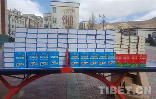 图为日喀则市教育局驻村工作队经协调募集的学习用品