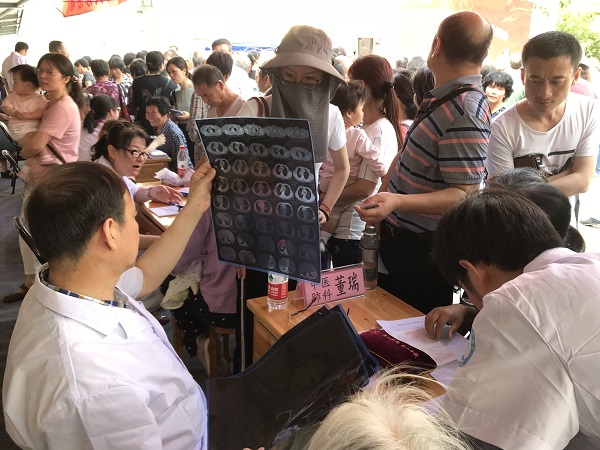 启动仪式后,民盟中央社会服务工作委员会副主任、北京康益德医院董事长兼院长、中医肺科主任医师董瑞,首都医科大学附属北京地坛医院儿科主任医师庞琳,首都医科大学附属北京安贞医院心脏外科主任医师穆军升,首都医科大学附属北京天坛医院神经内科副主任医师秦海强,北京协和医院放射科副主任医师王志伟等5位来自北京的盟员医疗专家,和周卫锦、徐林发等2位龙游盟员医疗专家开展了联合义诊服务工作。盟员专家们耐心细致地为患者诊治,共接待患者300余名,受到当地患者的欢迎和好评。