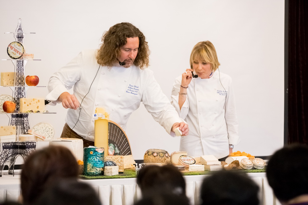 活动现场,大家观看了《法国-乳业之乡》的宣传片;聆听了法国奶酪传统文化科普讲座。荣获法兰西精英工匠大奖的两位奶酪大师为大家演示讲解了法国奶酪的品种、制作、特点及食用方法,并现场展示了精湛的刀工和精美的摆盘操作。