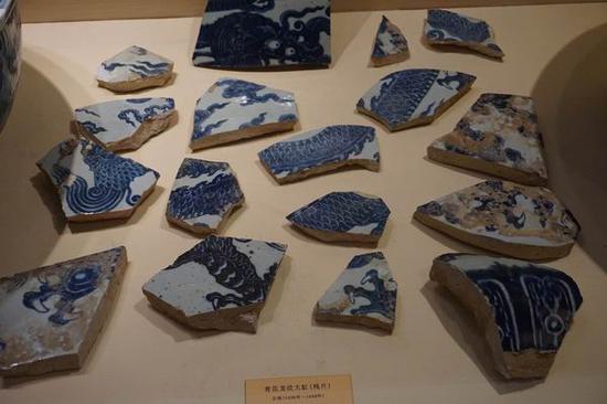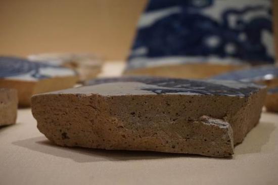 展览中有很多展品使人耳目一新。如:一组青花云龙纹大缸残片,修复后龙缸口径70多厘米,高80多厘米,形体之大,在明代绝无仅有。这种青花云龙纹大龙缸的出土,印证了相关文献记载。永乐十九年(1421年)四月,北京宫殿刚刚落成一年,前朝奉天、华盖、谨身三大殿即遭雷火焚毁。直到19年后的正统五年(1440年)二月才开始重建,于正统六年九月完工。据《明史》记载,当时“命造九龙、九凤膳案诸器,既又造青龙白地花缸。王振以为有璺,遣锦衣指挥杖提督官、敕中官往督更造?!钡笔泵煺庵智嗷ù罅资俏擞美葱钏然?,但因烧造难成,遂改用铜缸、铁缸。