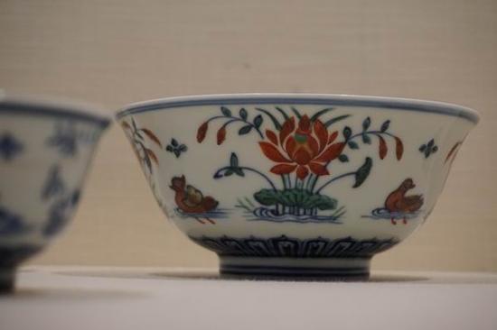 除考古发掘品外,故宫博物院还利用收藏明代御窑瓷器较为丰富的优势,展出一批宣德、成化朝御窑瓷器精品。因为正统、景泰、天顺三朝,上承宣德,下启成化,所以在瓷器面貌上有承前启后之处。通过对比,观众可以领略到正统朝御窑瓷器风格明显带有宣德遗风,而正统到天顺朝的御窑瓷器风格又明显影响了成化瓷器。