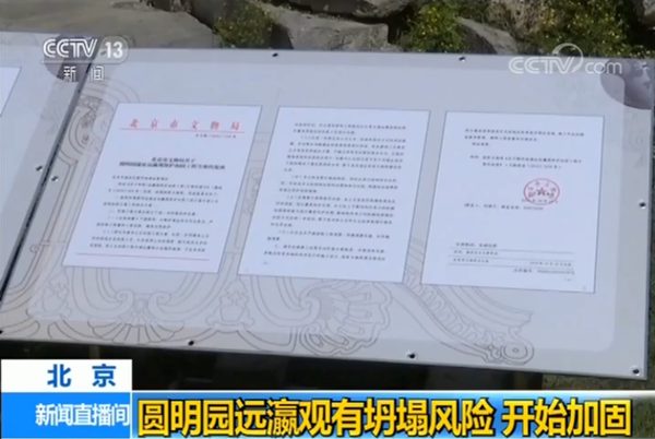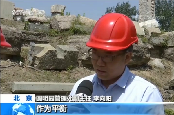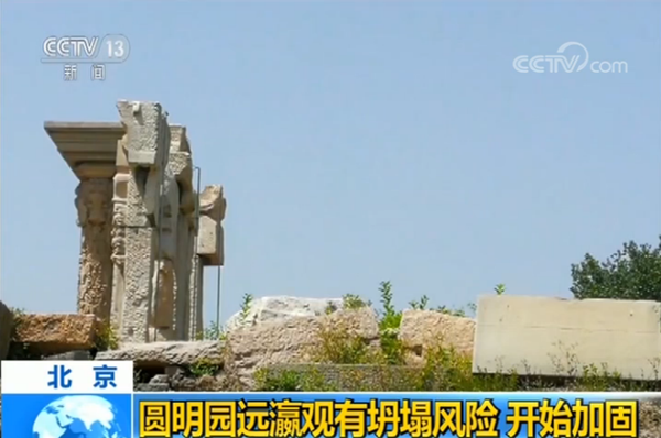 圆明园管理处副主任 李向阳:它现在就是以自身的重量作为平衡,失去了以前整体建筑的互相支撑,只是靠自己的平衡,一旦夯土出现倾斜,它有坍塌的危险。