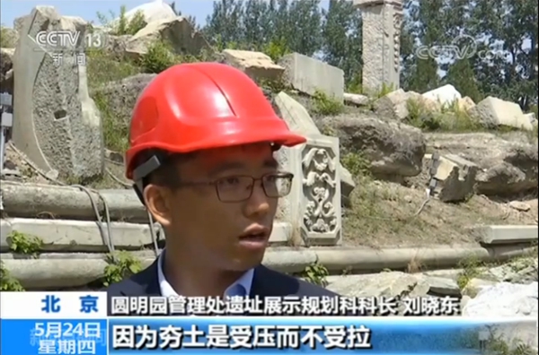 圆明园管理处遗址展示规划科科长 刘晓东:夯土的断裂可能很多时候是瞬间的,因为夯土它是受压而不受拉,它抗剪切力的能力是弱的,所以对现在夯土遗址的保护,也是迫在眉睫的。