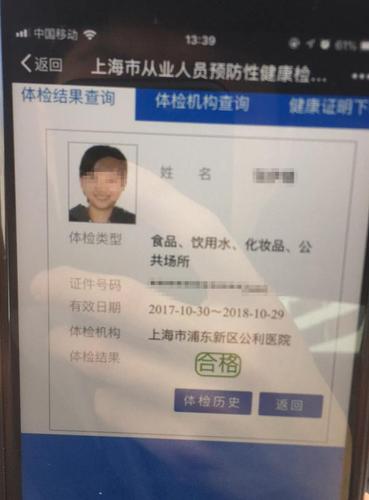 店家告诉澎湃新闻记者,店内的员工都有健康证,两名兼职剥虾员也办理了健康证,其中一人的有效期是2017年10月到2018年10月,并出示了电子证件。