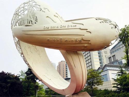 青岛奥帆中心雕塑“同一个世界,同一个梦想”。