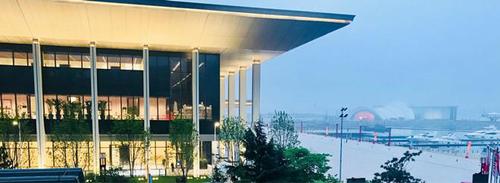 主场馆外形设计寓意“腾飞逐梦、扬帆领航”。