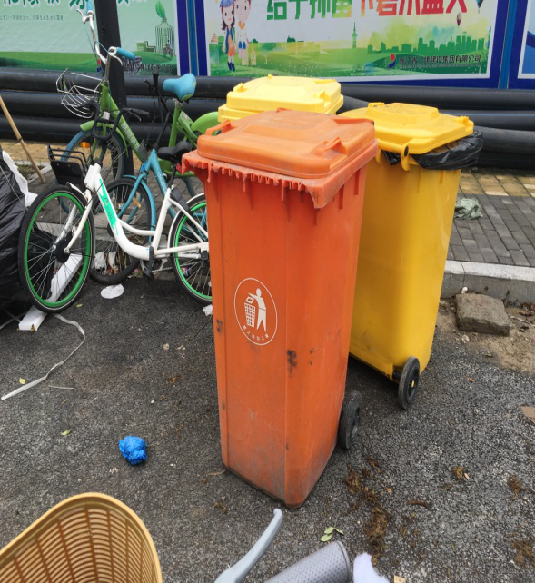 垃圾桶随意摆放,没有分类