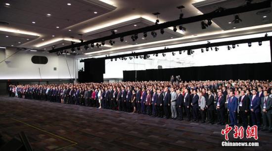 当地时间5月28日,第九届世界广东同乡联谊大会(简称“世粤联会”)暨第三届世界广东华人华侨青年大会在加拿大温哥华会展中心隆重开幕。。中新社记者 余瑞冬 摄