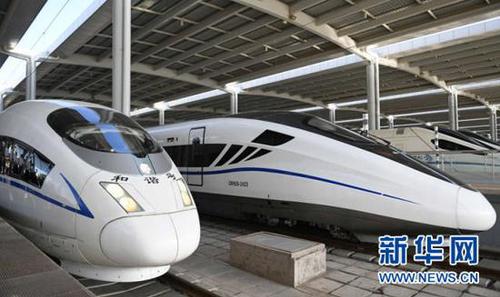 2017年7月9日,兰州铁路局开行的首趟宝兰高铁G2028次动车组(左)在兰州西站等待发车。来源:新华社