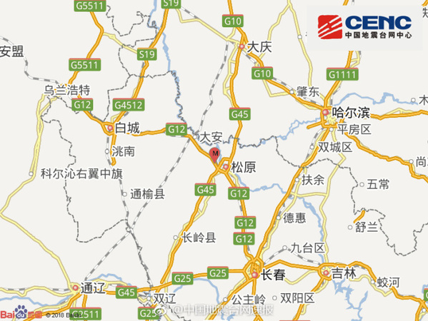 关键词:地震 吉林 松原市 宁江区 发生